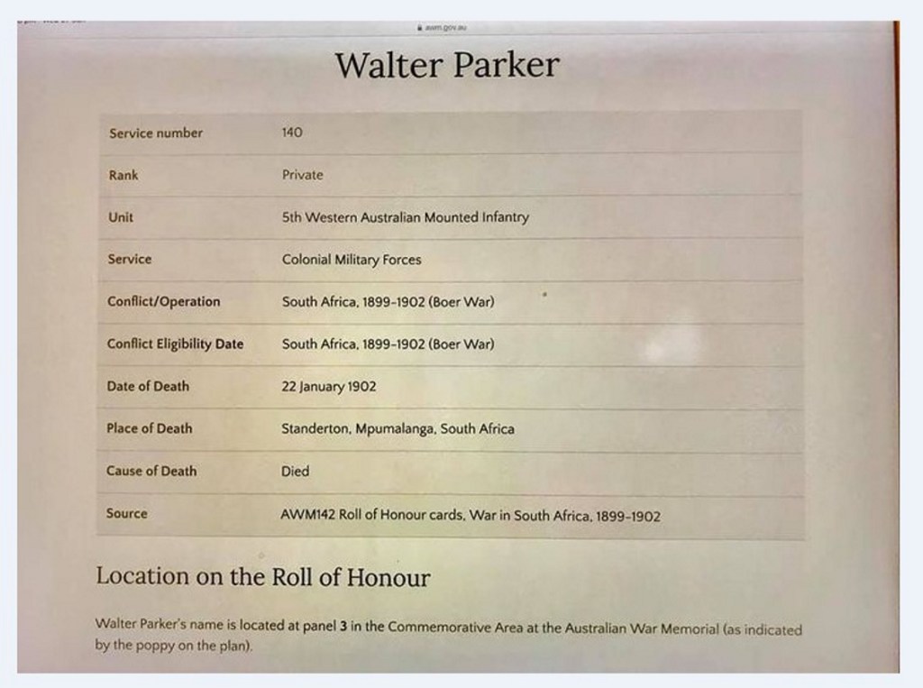 WALTER PARKER, NEWLY IDENTIFIED BOER WAR SOLDIER: A TRIUMPH FOR FAMILY HISTORIAN